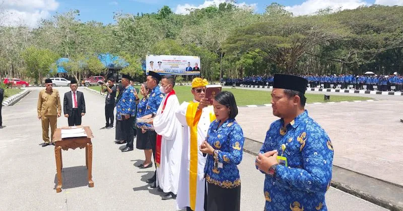ZONASULTRA.ID, KENDARI – Ribuan Aparatur Sipil Negara (ASN) dan Pegawai Pemerintah dengan Perjanjian Kerja (PPPK) di Sultra resmi mengucap sumpah untuk menjalankan tugas sesuai peraturan dan ketentuan yang berlaku di Kantor Gubernur Sultra pada Senin (28/8/2023).