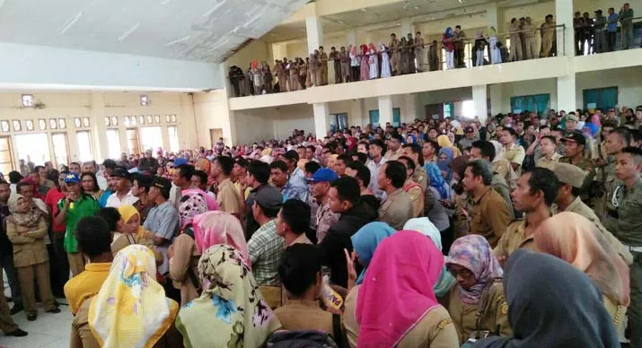 ZONASULTRA.COM, PASARWAJO – Ribuan tenaga honorer memadati pertemuan yang dihadiri oleh Asisten Administrasi Umum Sekretariat Makmur dan Kepala Badan Kepegawaian Pendidikan dan Pelatihan Daerah (BKPPD) Zanuriah Buton di gedung Wakaka, Kecamatan Pasarwajo, Kabupaten Buton, Selasa (12/12/2017)