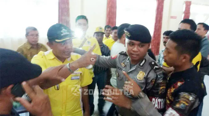 RICUH – Musyawarah Daerah Luar Biasa (Musdalub) Partai Golongan Karya (Golkar) Konawe, Sulawesi Tenggara (Sultra) terpaksa batal dilaksanakan akibat adanya sejumlah kader yang menolak dilaksanakannya musyawarah karena dianggap tidak sesuai AD/ART partai.(Restu Tebara/ZONASULTRA.COM)