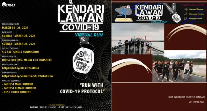 ZONASULTRA.COM, KENDARI – Komunitas lari Running is Out Therapy (RIOT) Indonesia Chapter Kendari akan menggelar event bertajuk “Kendari Lawan Covid-19” atau KLC Virtual Run 2021 pada 28 Maret nanti. Komunitas ini menargetkan 500 pelari akan ikut ambil bagian.