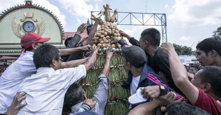 Penerimaan Gunungan dilakukan dengan kirab budaya Ambengan Agung. Gunungan yang berupa gunungan kuliner diarak oleh ratusan abdi dalem dari Kasultanan Yogyakarta dan Kasunanan Surakarta. Gunungan berisi hasil bumi dan tak ketinggalan sejumlah makanan tradisional yang menjadi ikon, seperti kipo, banjar, yangko, dan roti kembang waru yang diperebutkan untuk dimakan bersama-sama.