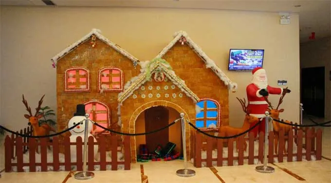 Ketika Anda memasuki area legend coffee shop hotel, para tamu akan disambut dengan bangunan rumah roti jahe berukuran besar.