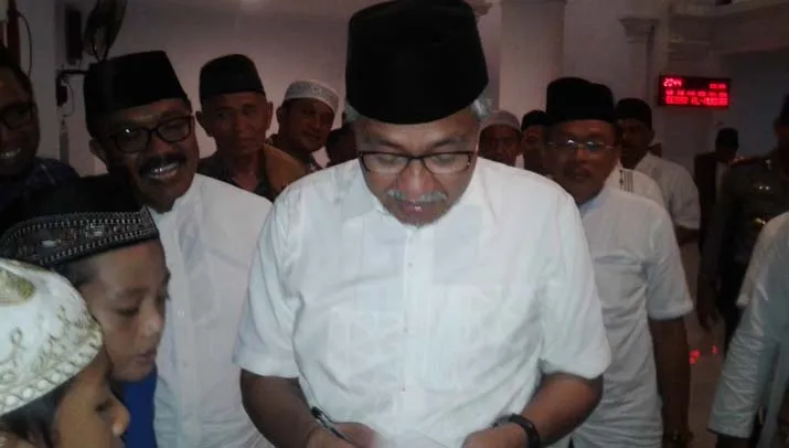SAFARI RAMADHAN – Gubernur Sultra Bersama Bupati Wakatobi, Arhawi Wawancara Usai Safari Ramadhan Di Mesjid Al-Muqarabin, Kecamatan Wangi-Wangi, Kabupaten Wakatobi, Selasa (6/6/2017). (Nova Ely Surya/ZONASULTRA.COM)