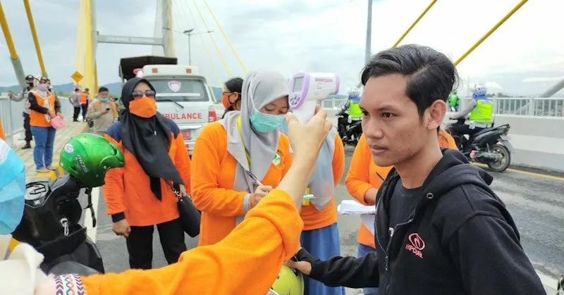 Pantauan awak zonasultra, dengan memboyong ambulans ke atas jembatan, satgas Covid-19 dan kepolisian melakukan imbauan dan mendata warga yang tidak memakai masker. Mereka juga melakukan pengecekan suhu tubuh menggunakan thermo gun.