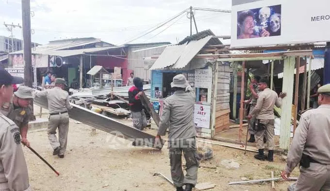 Satpol PP Kota Kendari Tertibkan Kios Semi Permanen di Tepi Jalan Malaka