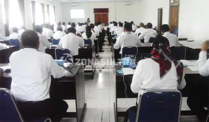 ASESMEN – Peserta seleksi terbuka pengisian Jabatan Pimpinan Tinggi (JPT) Pratama Eselon II b lingkup Pemerintah Kabupaten Buton Utara saat mengikuti asesmen di Aula Badan Kepegawaian dan Pengembangan Sumber Daya Manusia (BKPSDM), Minggu (3/12/2017). (Irsan Rano/ZONASULTRA.COM)