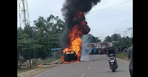 Tidak lama kemudian mobil tersebut mengeluarkan asap hitam dan langsung terbakar.