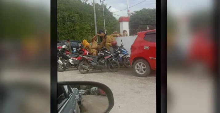 ZONASULTRA. ID,LABUNGKARI- Sejumlah peserta apel yang diduga Aparatur Sipil Negara (ASN) Kabupaten Buton Tengah (Buteng) melompati pagar Kantor Bupati, Senin (1/8/2022).