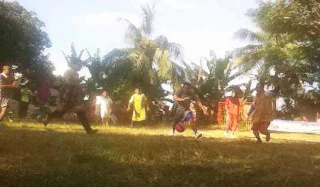 ZONASULTRA.COM,KENDARI– Bagaimana jadinya jika bermain sepak bola dengan mengenakan busana wanita seraya diiringi musik. Sangat kocak tentunya bukan. Nah, di kelurahan Rahandouna, Kecamatan Poasia, Kota Kendari, warga RT.01 dan RT 02 menggelar pertandingan sepak bola yang terbilang unik dan kocak ini.