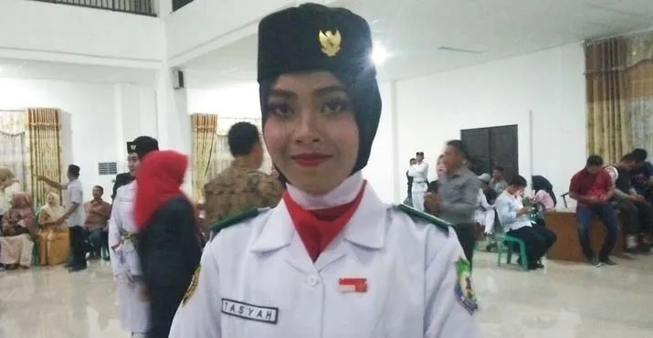 ZONASULTRA.COM,RUMBIA-Namanya Tasya. Usianya 15 tahun. Remaja cantik dari Poleang, ini menyita perhatian ratusan orang yang hadir dalam pengukuhan anggota Pasukan Pengibar Bendera Pusaka (Pusaka) Kabupaten Bombana, Sulawesi Tenggara (Sultra), di auditorium Kantor Bupati Bombana, Rabu (15/8/2018) malam. Gadis bertubuh semampai ini didapuk jadi pemimpin pasukan yang berjumlah 80 orang itu.
