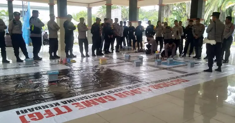 ZONASULTRA.ID, KENDARI – Dalam rangka mengantisipasi kerawanan demonstrasi penolakan kenaikan harga Bahan Bakar Minyak (BBM) di wilayah Kota Kendari, pihak Kepolisian yang terdiri dari 4 kompi dan 2 destasemen menggelar Technical Floor Game (TFG) di pelataran Kantor DPRD Sultra pada Selasa (6/9/2022).