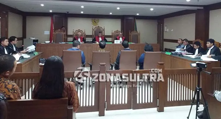 SIDANG – Pemeriksaan empat orang saksi yang dihadirkan dalam sidang Umar Samiun yaitu Hamdan Zoelva mantan Hakim MK, Kasianur Sidauruk, Syaiful Anwar dan Ina Zuchriyah, Senin (19/6/2017). (Rizki Arifiani/ZONASULTRA.COM)