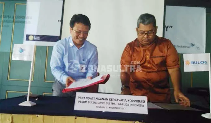 ZONASULTRA.COM, KENDARI – PT.Garuda Indonesia Tbk. Cabang Kendari menggandeng Perum Badan Urusan Logistik (Bulog) Divisi Regional (Divre) Sulawesi Tenggara (Sultra) melakukan penandatanganan nota kesepahaman, hal itu dilakukan demi sinergitas Badan Usaha Milik Negara