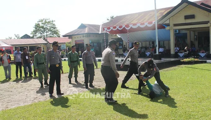 Skenario Sispam Polres Konawe, Massa Serang Kantor PPK Hingga KPUDSKENARIO SISPAM – Anggota Polwan Polres Konawe berhasil melumpuhkan salah satu pendukung paslon yang berusaha menyerang petugas saat sedang mengawal pendistribusian kotak suara di kantor PPK dalam acara simulasi pengamanan pilkada, Jumat (5/1/2018). (DEDI FINAFISKAR/ZONASULTRA.COM)