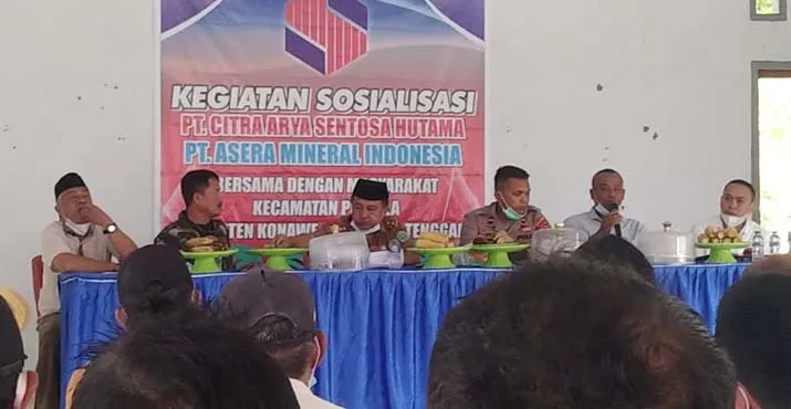 ZONASULTRA.COM, UNAAHA – Sosialisasi dua perusahaan tambang nikel PT Citra Arya Sentosa Hutama (CASH) dan PT Asera Mineral Indonesia (ASMINDO) bersama masyarakat Kecamatan Puriala, Kabupaten Konawe, Provinsi Sulawesi Tenggara (Sultra) berlangsung alot, Senin (18/1/2021) di Balai Kecamatan Puriala.