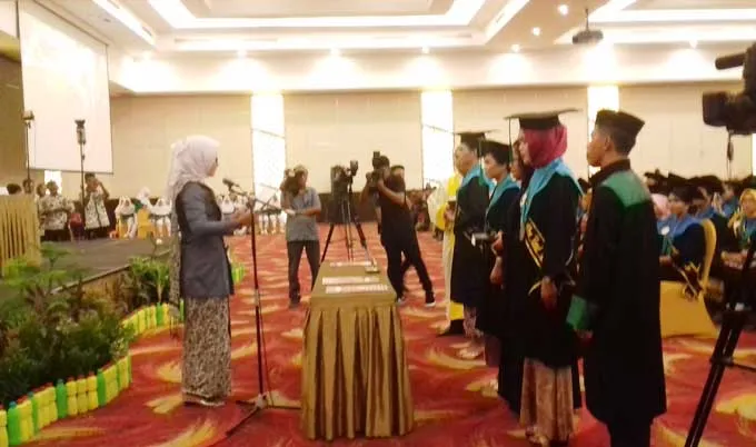 WISUDA : Suasana saat pengucapan janji alumni saat acara wisuda Sekolah Tinggi Ilmu Kesehatan (STIK) Avicenna Kendari di Grand Clarion Hotel Kendari, pada Selasa (7/2/2017). (SRI RAHAYU/ZONASULTRA.COM).