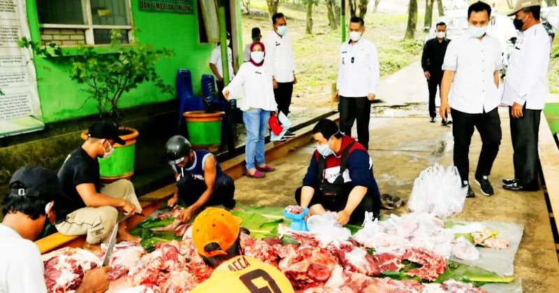 Usai disembelih, wali kota kemudian menyerahkan secara simbolis daging kurban tersebut yang sudah dikemas menjadi 270 kantong dengan berat masing-masing satu kilogram.
