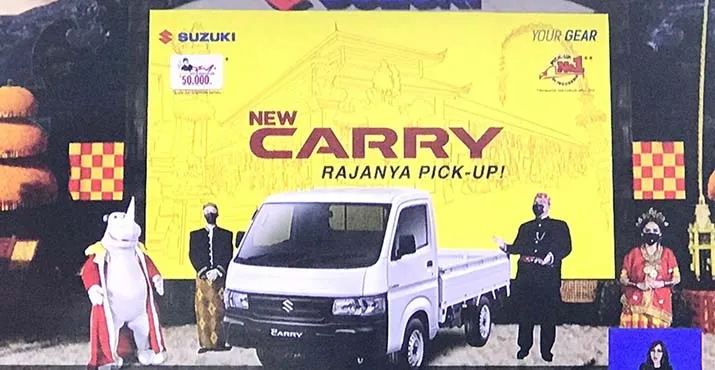 SUZUKI - PT Suzuki Indomobil Sales (SIS) meluncurkan New Carry Pick Up yang hadir dengan tampilan baru. Acara peluncuran kendaraan niaga andalan Suzuki ini dilaksanakan pada Kamis (21/1/2021) melalui saluran YouTube resmi Suzuki Indonesia pada pukul 10.00 WIB. (Foto : Istimewa)