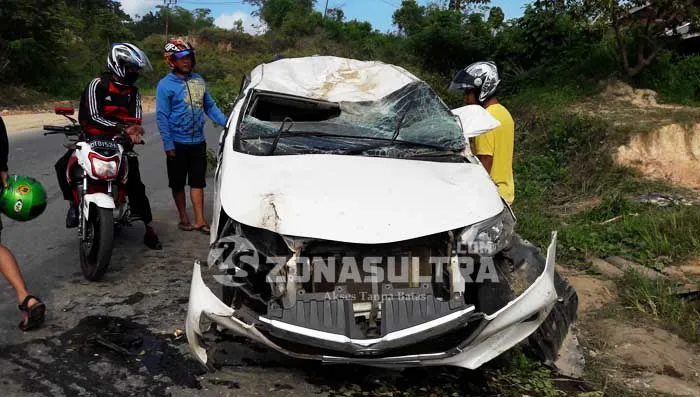 Menurut saksi mata, Masrin (31),  mobil tersebut meluncur dari arah Wua-Wua menuju Puwatu. Mobil itu menghantam sebuah pohon di tepi jalan dan pondasi saluran drainase hingga terbalik.