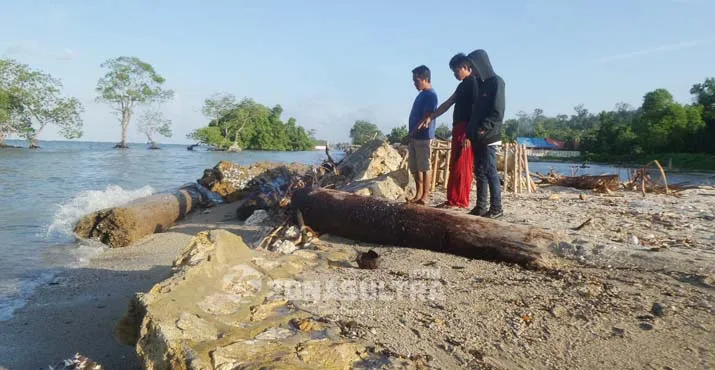 ZONASULTRA.COM, LANGARA – Talud pantai sepanjang sebelas meter di desa Nanga, kecamatan Wawonii Timur, kabupaten Konawe Kepualaun, Sulawesi Tenggara (Sultra) ambruk setelah diterjang ombak.