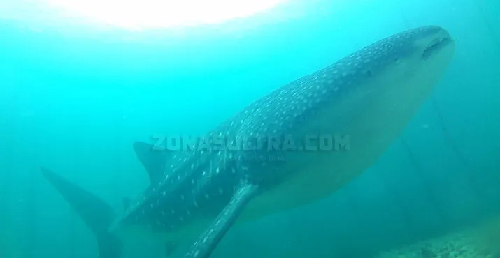 ZONASULTRA.COM, UNAAHA – Seekor hiu paus (Rhincodon typus) masuk ke dalam sero nelayan di perairan Pulau Bokori, Kecamatan Soropia, Kabupaten Konawe, Sulawesi Tenggara (Sultra), Sabtu (5/1/2018). Biota laut ini memiliki panjang 7 meter dan diketahui berjenis kelamin jantan.