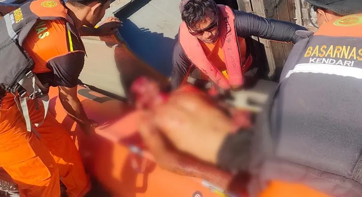 Mengetahui hal tersebut, nakhoda kapal kemudian menelpon istrinya dan memberitahu perihal kejadian itu. Setelah menerima informasi, Basarnas langsung turun ke lokasi untuk mengevakuasi dengan membawa korban ke Rumah Sakit Umum Daerah (RSUD) Wakatobi agar mendapatkan perawatan medis.