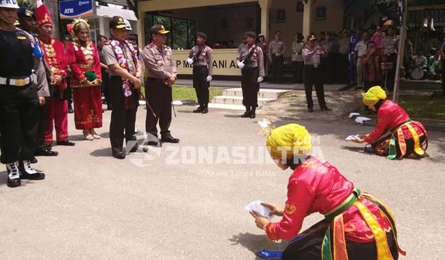 Kepala Kepolisian Republik Indonesia (Kapolri) Jenderal Polisi Tito Karnavian telah tiba di Mapolda Sultra, Kamis (23/2/2017) siang. Kapolri langsung disambut dengan Tari Lariange. (Lukman Budianto/ZONASULTRA.COM)