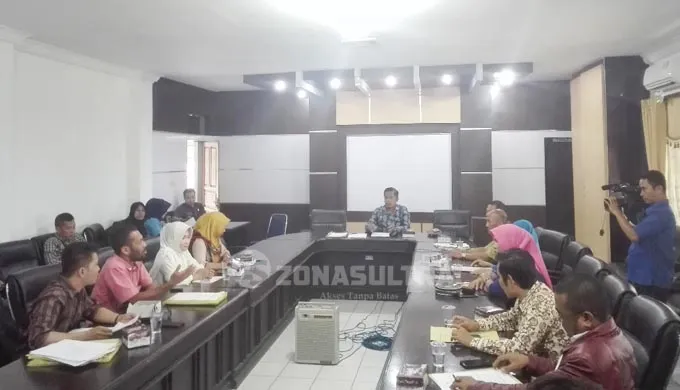 RDP - Anggota Komisi IV DPRD Sulawesi Tenggara (Sultra) Muhammad Poli saat melakukan rapat dengar pendapat (RDP) dengan Forum Komunikasi Pegawai Tidak Tetap Penugasan Khusus Kesehatan (FORKOM PTT PENSUSKES) di gedung Sekretariat DPRD setempat, Kamis (4/12/2017). Dalam RDP ini, FORKOM PTT PENSUSKES meminta DPRD Sultra untuk mengawal nasib status tenaga kesehatan penugasan khusus (Pensus) yang saat ini terpuruk dalam kesejahteraan. (RAMADHAN HAFID/ZONASULTRA.COM)