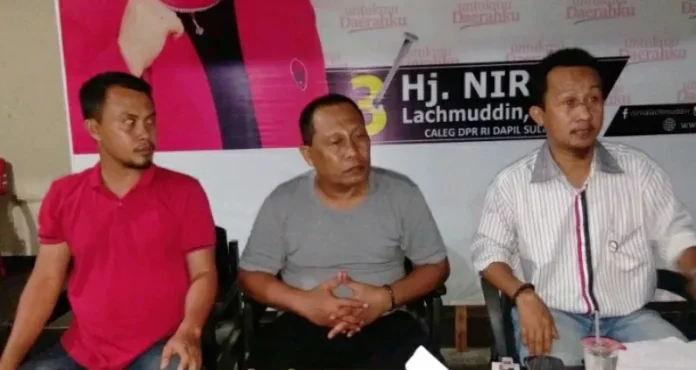KONFERENSI PERS - Kuasa Hukum Sahabat Nirna Lachmuddin Awaluddin (Kanan) Anggota Tim Kampanye Tahir Tahero (tengah) saat melakukan konferensi pers di Posko Pemenang Nirna Lachmuddin, Jumat (15/2/2019) (Fadli Aksar/ZONASULTRA)