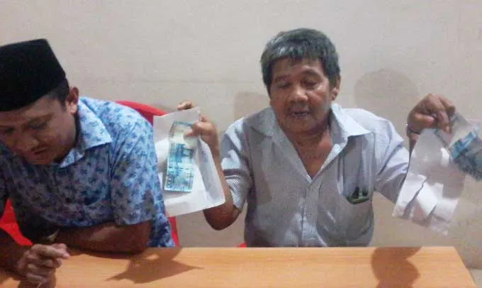 POLITIK UANG - La Ode Harun Rasyid saat menunjukkan barang bukti amplop berisi uang. Amlop tersebut dibagi-bagikan pelaku money politik di Jalan Pasaeno, Kelurahan Bende, Selasa sore (24/1/2017). (Muhamad Taslim Dalma/ZONASULTRA.COM)