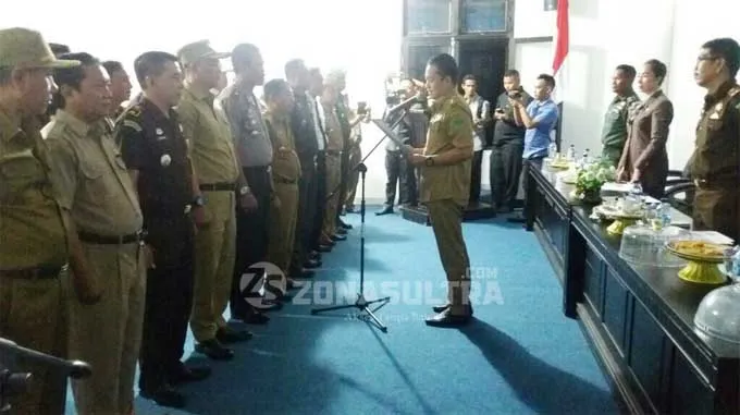PELANTIKAN – Tim sapu bersih pungutan liar (saber pungli), Kabupaten Konawr, Sulawesi Tenggara (Sultra) resmi dibentuk, Senin (15/5/2017). (Restu/ZONASULTRA.COM)