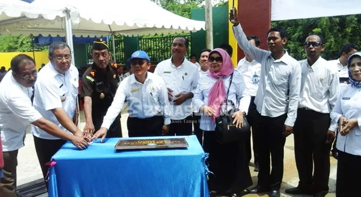 PASAR NAMBO - Walikota Kendari Asrun sedan menekan tombol sirine di acara peresmian Pasar Nambo di Kelurahan Nambo Kecamatan Abeli, Rabu (16/11/2016). Penekanan tombol tersebut merupakan tanda telah diresmikannya Pasar Nambo. (IRSAN RANO/ZONASULTRA.COM)