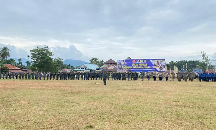 ZONASULTRA.ID, WANGGUDU- TNI menggelar upacara pembukaan program Manunggal Membangun Desa (TMMD) Ke 121 TA 2024 dengan tema “Darma Bakti TMMD Mewujudkan Percepatan Pembangunan di Wilayah” di Lapangan Bola, Kecamatan Asera, Kabupaten Konawe Utara (Konut) Rabu (24/7/2024).