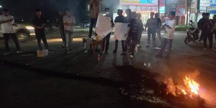 Aksi yang dimulai jelang malam ini sempat mengakibatkan arus lalu lintas sekitar mengalami kemacetan setelah massa menutup sebagian ruas jalan dengan membakar ban.