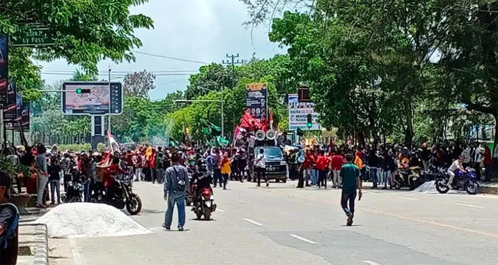 Alhasil, jalan perempatan eks MTQ menuju DPRD Sultra hanya dipenuhi oleh elemen mahasiswa. Aksi unjuk rasa ini serentak dilakukan di seluruh Indonesia. Para mahasiswa dan buruh mendesak pemerintah dan DPR RI mencabut undang-undang cipta kerja.