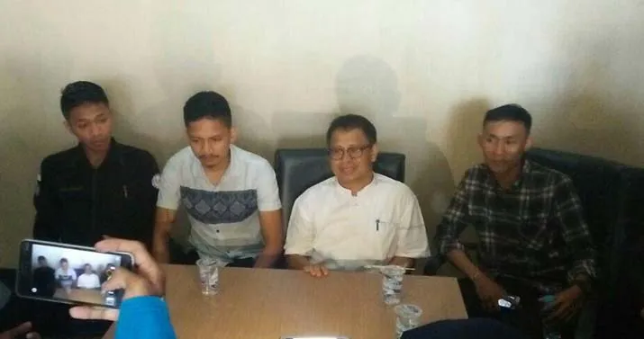 SANKSI – Wakil Rektor III Universitas Halu Oleo (UHO), Nur Arafah bersama perwakilan Majelis Permusyawaratan Mahasiswa (MPM) UHO saat melakukan konferensi pers terkait mahasiswa UHO yang terlibat dalam video seruan aksi 299, di Ruang kerja WR III, Jumat (29/9/2017). (Sri Rahayu/ZONASULTRA.COM)