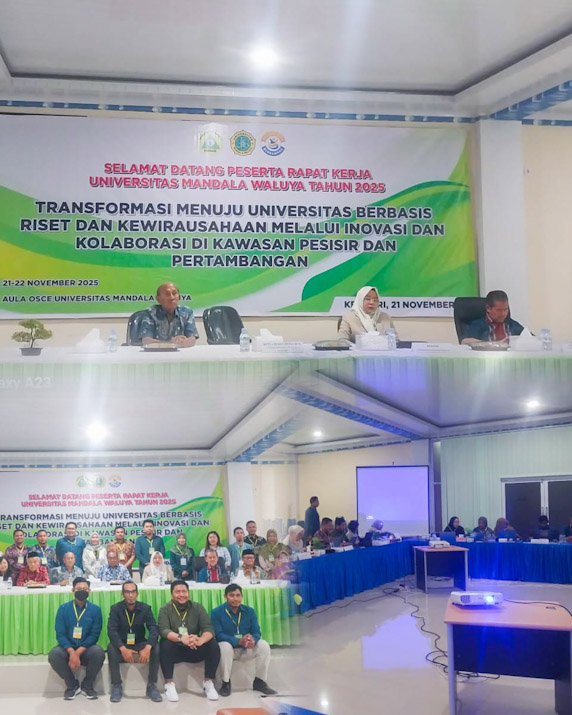 ZONASULTRA.ID, KENDARI- Universitas Mandala Waluya (UMW) Kendari, menggelar Rapat Kerja (Raker) Tahun 2025 dengan mengusung tema “Transformasi menuju universitas berbasis riset dan kewirausahaan melalui inovasi dan kolaborasi di kawasan pesisir dan pertambangan”.