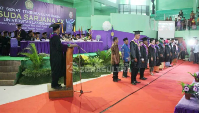 WISUDA – Sebanyak 272 mahasiswa dari delapan jurusan di Universitas Lakidende (Unulaki) Konawe diwisuda, Minggu (7/5/2017) di Gedung Olah Raga (GOR) setempat. Delapan jurusan itu adalah Ilmu Administrasi Negara (ADM), Teknik Sipil, Angrobusnis, Matematika, Hukum, Ekonomi Managemen, Bahasa Indonesia, dan Bahasa Inggris. (Restu/ZONASULTRA.COM)