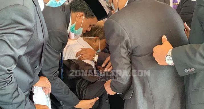 Sontak tamu undangan yang berada di mimbar langsung melakukan pertolongan. Terlihat beberapa anggota DPRD Mubar dan tamu lainnya turut membantu dengan membuka jas yang dikenakan oleh bapak La Kudja.