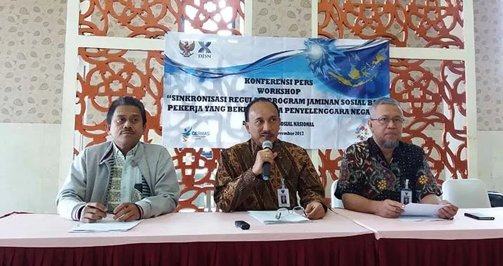 BPJS KESEHATAN - Ketua Dewan Jaminan Sosial Nasional (DJSN) Sigit Priohutomo (tengah) dalam acara workshop Sinkronisasi Regulasi Program Jaminan Sosial Bagi Pekerja yang Bekerja pada Penyelenggaraan Negara yang digelar di Kebayoran Baru, Jakarta Selatan, Kamis (30/11/2017). Ia mengatakan bahwa 8 penyakit katasptripoik yang tidak akan dibiayai secara penuh oleh BPJS atau akan dikenakan iur biaya (cost sharing) kepada peserta adalah hoax. (Rizki Arifiani/ZONASULTRA.COM)