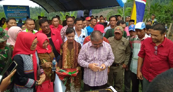 “Jalanan ini masih jalan yang dibangun oleh transmigrasi, sekolah ini masih transmigrasi, saya kira yang lain-lain juga masih transmigrasi. Bagitu sudah menjadi desa, akan mendapat dana desa (DD) mendapat ADD, yang besarnya kurang lebih 1 miliar. Apa saja bisa dibangun,” ujarnya.