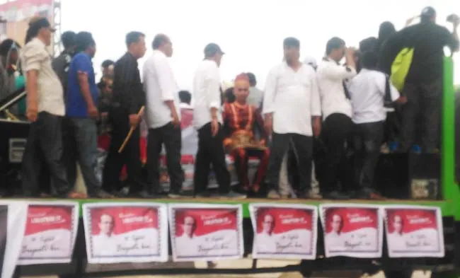 Massa Bertahan mengambil star kedua setelah iring-iringan kendaraan pendukung dan simpatisan pasangan H. Kasra Jaru Munara- H. Man Arfa dengan tagline Berkah meninggalkan lokasi deklarasi.