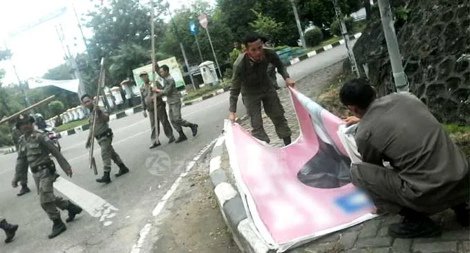 Satpol PP diberi waktu 3 hari sampai Rabu, 14 Februari 2018 untuk membersihkan semua baliho. (C)