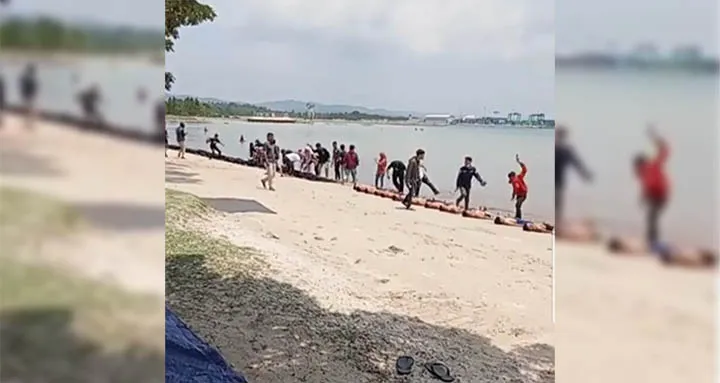 Video tersebut memperlihatkan puluhan mahasiswa baru angkatan 2020, laki-laki berbaring tanpa menggunakan baju dan perempuan yang berbaring terpisah dengan laki-laki di pasir pantai, sambil dipukuli dan ditendang oleh seniornya.