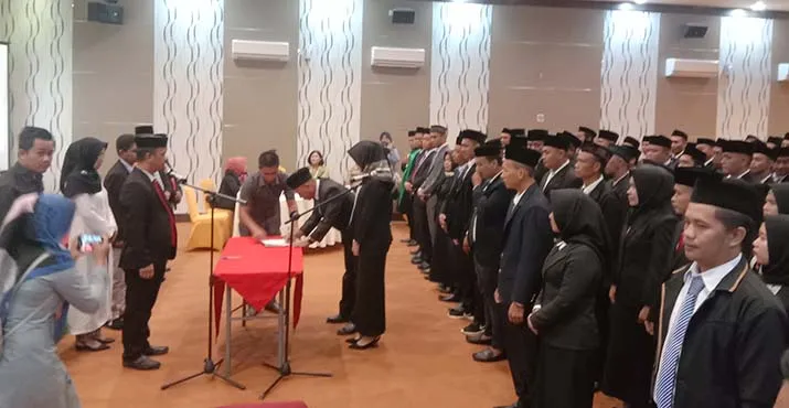 ZONASULTRA.COM,ANDOOLO-Sebanyak 125 Panitia Pemilihan Kecamatan (PPK) dilantik KPU Konawe Selatan (Konsel) Sulawesi Tenggara (Sultra) yang digelar di Aula Hotel Wonua Monapa, Kecamatan Ranomeeto, Sabtu (29/2/2020). Dalam kesempatan itu, Wakil Bupati (Wabup) Konsel, Arsalim Arifin mengingatkan agar para penyelenggara pemilihan kepala daerah (pilkada) di tingkat kecamatan dapat disiplin dalam bekerja.