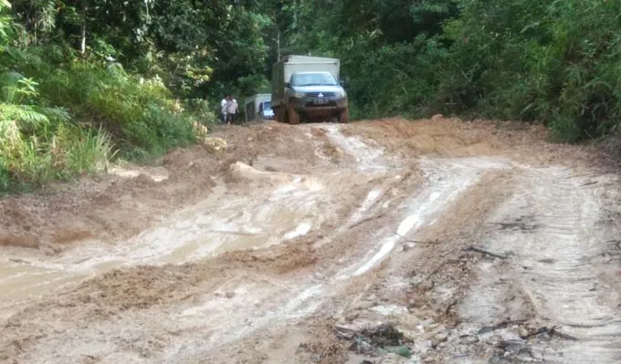 Padahal, jalan yang melintasi area pegunungan itu rusak parah sepanjang puluhan kilo meter. Badan jalan berlumpur dan berlubang serta digenangi air setinggi 30 sentimeter akibat air hujan yang masuk kebadan jalan karena tak memiliki drainase sebagai tempat pembuangan air.