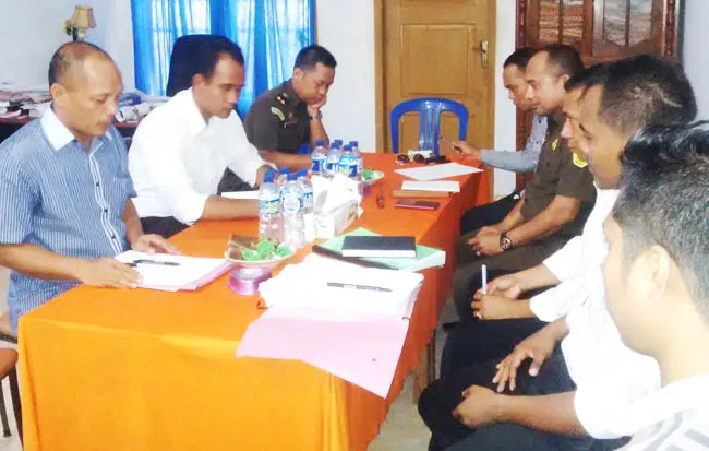 Rapat Gakumdu di Kantor Panwaslu Muna, menindaklanjuti kasus dugaan SKTT Desa Marobo yang dipergunakan oleh sejumlah warga Desa Waburense ikut memilih dalam Pilkada Muna, Senin (21/12/2015). (Lily/ZONASULTRA.COM)