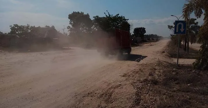 Hal yang sama juga dikeluhkan oleh Eli (28), pria yang sehari harinya berprofesi sebagai tukang ojek ini mengaku pasrah menghadapi kepulan debu setiap harinya jika melintas di siang hari.