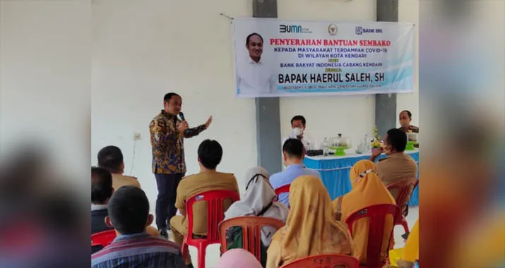 Untuk diketahui, dalam kegiatan itu Haerul saleh bersama BRI juga menyerahan secara simbolis berupa bantuan 1500 paket sembako senilai 150.000.000 yg diserahkan langsung oleh kepala cabang BRI kendari Bapak edy Muthalib, disaksikan oleh camat kendari barat Sahurianto. (b)