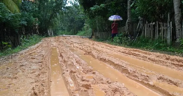 Jalanan menjadi licin, berlubang, dan penuh lumpur. Kondisi tersebut menyulitkan aktivitas warga Tanjung Tiram.